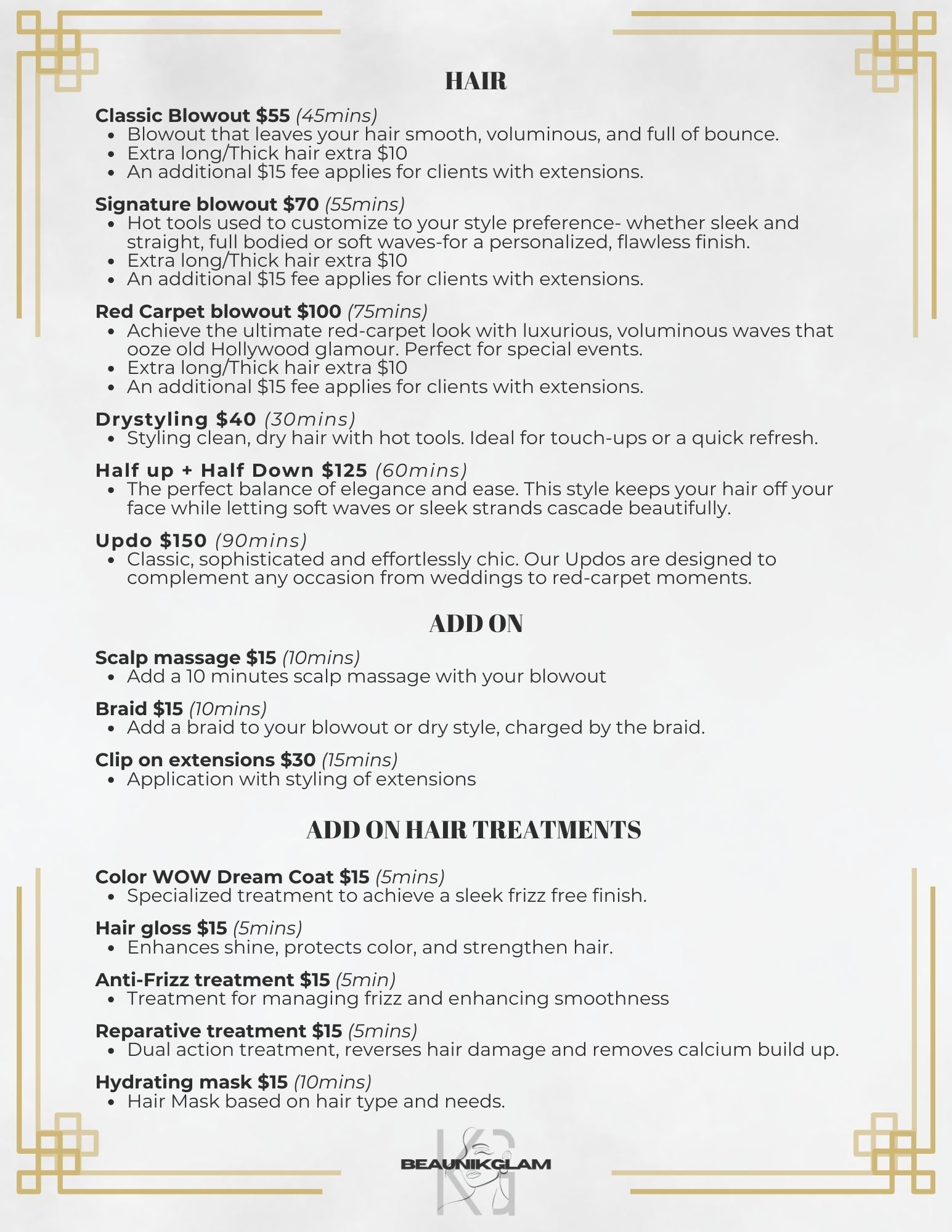 In order for us to best serve our clients please arrive on time. Appointments will be canceled and charged a no-show fee of $14 if you do not arrive within 15 minutes of your booked appointment time.